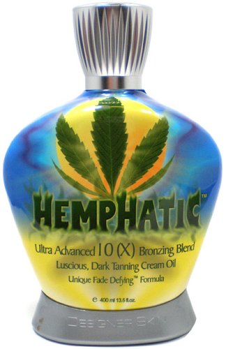 Designer Skin Hemphatic Bronzer Indoor Tanning Salon Tan Cream Oil / Lotion for Men and Women e400 ml 13.5 fl.oz. has unique fade defying formula an advanced dark tanning cream oil that delivers the best of both worlds: a luxurious cream with the magnifying and skincare benefits of an oil. Combined into one perfect formula. Dark bronze color so spectacular, it's not of this world.