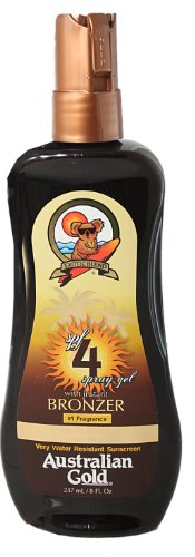 Product Description : Australian Gold SPF 4 Spray Gel with Bronzer, 8 Ounce