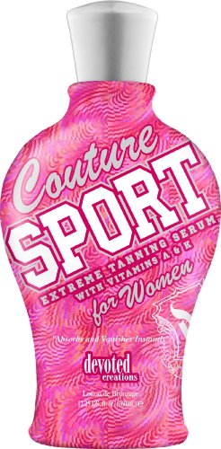 This serum formula utilizes Tea Tree Oil, Acai Oil and Pomegranate Oil to protect skin from environmental damage. Extreme tan enhancers provide the darkest tan imaginable. Ordanone eliminates after tan odor. Targeted anti-aging complex reduces the appearance of wrinkles and Vitamin K helps reduce redness and blotchy skin tones. Size- 12.25ozRead more Devoted Creations Sport Couture for Women Tanning Lotion 12.25 oz.
