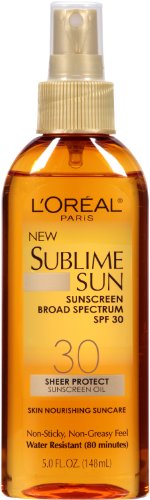 L'Oreal SPF 30 Sublime Sun Oil Spray, 5 Fluid Ounce by L'Oreal Broad-spectrum UVA/UVB. Non-greasy/fast-absorbing. Dry finish.Read more L'Oreal SPF 30 Sublime Sun Oil Spray, 5 Fluid Ounce